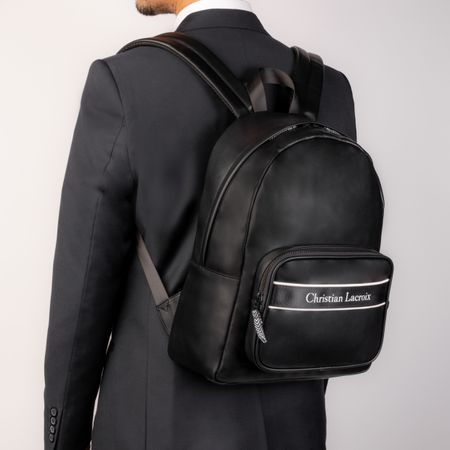 Ce sac à dos est moderne avec un esprit résolument actif. Réalisé en cuir végétal souple et lisse, les accents blancs sont très tendance, notamment le logo iconique Christian Lacroix surdimensionné et imprimé sur la sangle en guise de signature. Tous les détails ont été soigneusement travaillés, jusqu'à la tirette de la fermeture éclair qui reprend l'imprimé chevron iconique de la marque, également en noir et blanc. A avoir absolument !