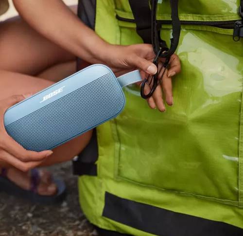 Avec sa grille en acier thermolaqué et son revêtement en silicone, l’enceinte Bluetooth SoundLink Flex a été spécialement conçue afin de pouvoir vous suivre dans vos aventures. Son extérieur robuste peut résister à presque tous les accidents, tandis que son thermolaquage ne s’écaille pas et résiste à la corrosion et aux rayons UV.