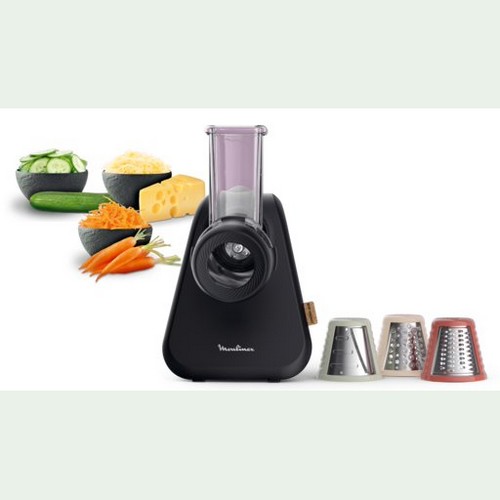 La gamme Eco Respect est la première à proposer des produits dédiés à la préparation culinaire pensés pour réduire l'impact sur l'environnement. Fabriqué en France à partir de 39 % de plastique recyclé, ce produit est aussi vendu dans un éco-emballage (plus de détails ci-après). Ce découpe-légumes est sans BPA, recyclable à 87 % et réparable pendant 10 ans. Grâce à son système simple de cônes colorés, le découpe-légumes électrique Eco Respect de Moulinex vous permet de préparer tous vos légumes avec un seul appareil facile à utiliser. Râpez, tranchez et émincez à la perfection et obtenez des résultats exceptionnels sur les ingrédients de vos recettes préférées : les légumes, les fruits, le fromage, le chocolat, et plus encore. Réalisez de délicieux plats maison comme des salades, d'appétissants beignets de légumes ou des galettes de pomme de terre parfaites à tous les coups. Grâce au large tube d'alimentation, vous aurez moins d'efforts de découpe à fournir avant d'insérer les ingrédients. Par ailleurs, l'appareil est facile à nettoyer et à ranger. Ce découpe-légumes au design écologique, compact et élégant apporte la touche finale parfaite et trouvera facilement sa place dans toutes les cuisines.