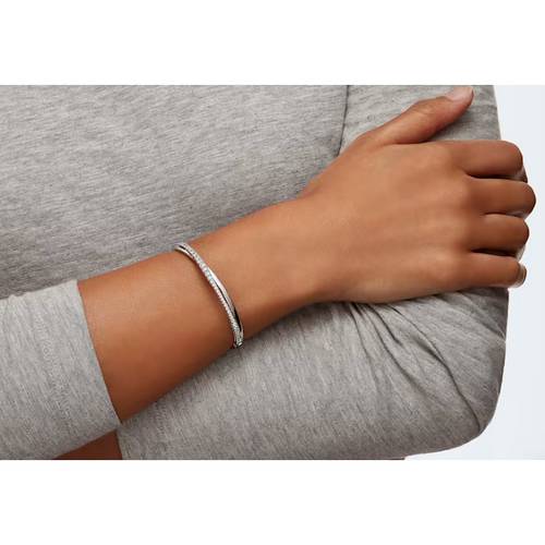 Ce beau bracelet-jonc créé par Swarovski, interprétation moderne de la forme spiralée tendance, affiche une discrète élégance intemporelle. Une ligne brillante de pierres en cristal blanc souligne les lignes doucement incurvées du bracelet-jonc, ajoutant un éclat scintillant au design. Tendance et raffiné, ce bracelet-jonc rehausse votre look de tous les jours d’une touche brillante. Dimensions : 5.4 cm x 4.8 cm