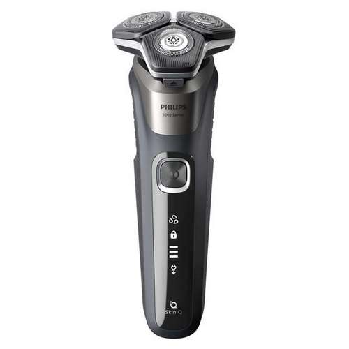Rasoir 3 têtes - Series 5000 - Un rasage puissant en coupant encore plus de poils par passage ! - Technologie avancée SkinIQ (Capteur Power Adapt) qui permet de détecter et de s'adapter à la densité de la barbe pour un meilleur confort cutané - Têtes flexibles pivotant à 360° qui suivent le contour du visage et conçues pour donner aux poils une position de coupe efficace - Lames SteelPrecision : 45 lames hautes performance qui réalisent jusqu'à 90 000 coupes par minutes - Pratique : efficace sur peau humide, sèche et même sous la douche - Tondeuse de précision rétractable intégrée - Autonomie 60 minutes pour 1 h de charge - Charge rapide de 5 minutes pour 1 rasage complet - Affichage LED avec icônes pour une utilisation intuitive du rasoir - Housse de voyage et brossette de nettoyage - Tête de rechange SH71 - Batterie Lithium-ion - Coloris Gris carbone - Garantie 2 ans.