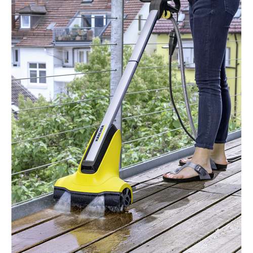 Le nettoyeur de terrasses mécanique permet de nettoyer les saletés les plus tenaces des surfaces en bois ou en pierre, facilement, soigneusement, et de manière uniforme. Connectez le simplement au tuyau d'arrosage et commencez à frotter. La combinaison de deux brosses-rouleaux interchangeables et le réglage du débit d'eau permettent de décoller et d'évacuer la saleté en même temps. Les terrasses peuvent être nettoyées en un rien de temps et sans utiliser plus d'eau que nécéssaire. Les brosses-rouleaux sont conçues afin que deux lames de terrasses puissent être nettoyées jusqu'au bord en une seule fois. Grâce à ses brosses intercheangables il peut aussi être utilisé sur des surface en bois ou en PVC.