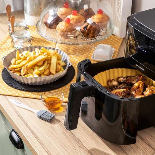 Ces 2 paniers en silicone pour friteuses à air sont antiadhésifs, réutilisables et parfaits pour préparer des recettes plus saines sans matières grasses. Ils peuvent également passer au four et au micro-ondes et conviennent au réfrigérateur et au lave-vaisselle. Comprennent un pinceau de cuisine.